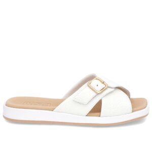 Sapatilha Branca Marfim Couro Lateral Tecido
