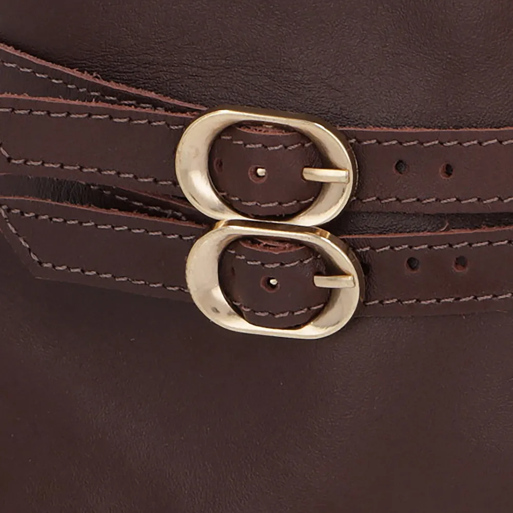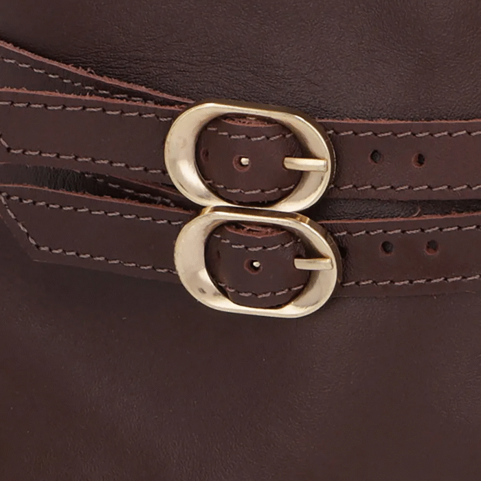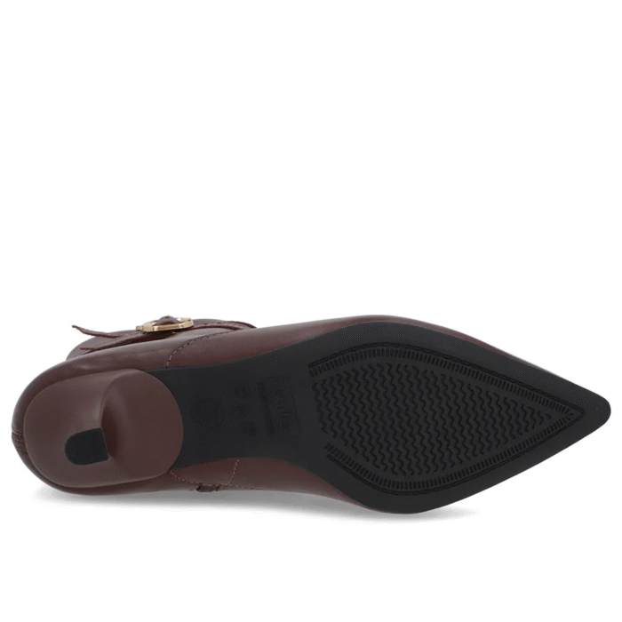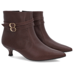 Bota Bico Fino Salto Kitten Marrom Couro Tiras