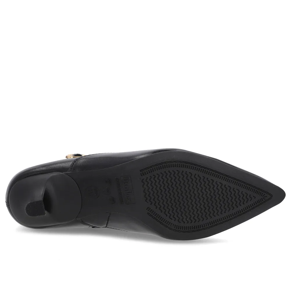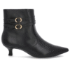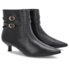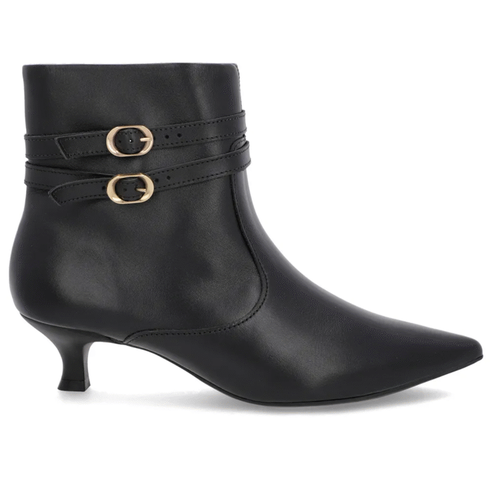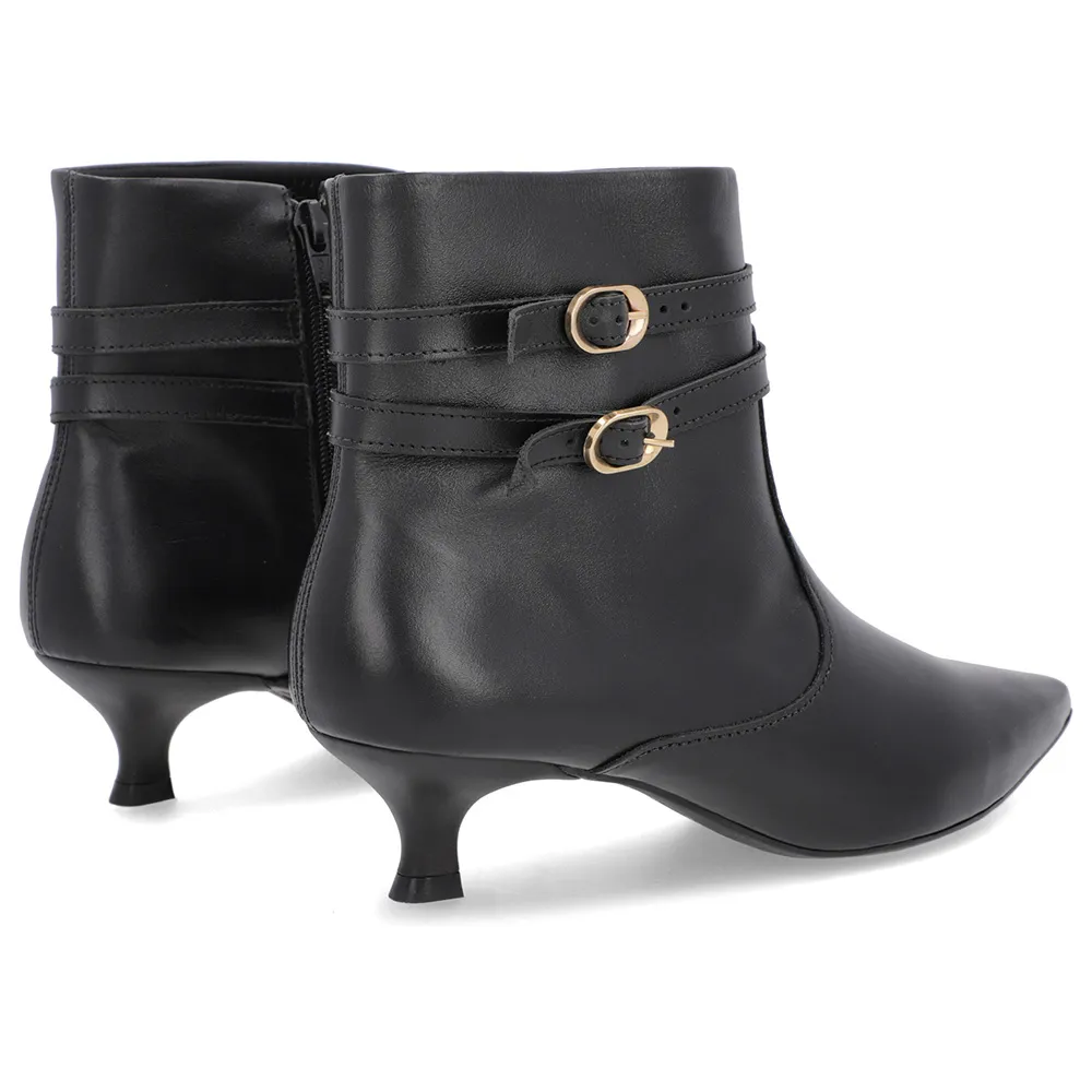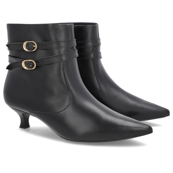 Bota Bico Fino Salto Kitten Preta Couro Tiras