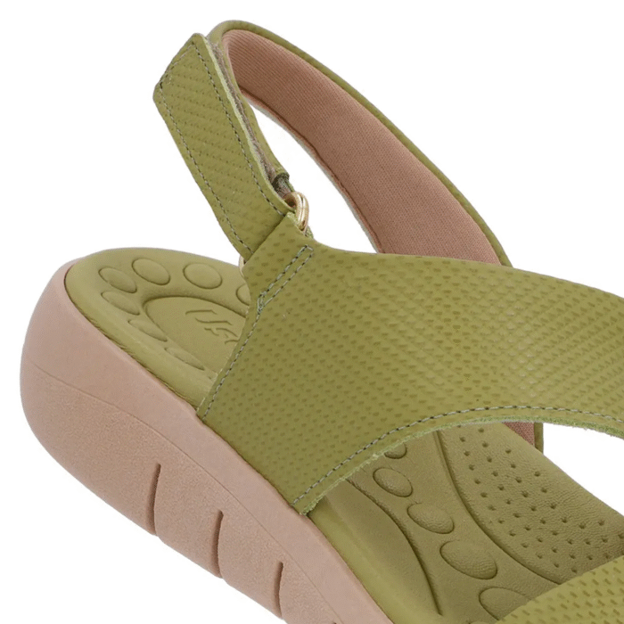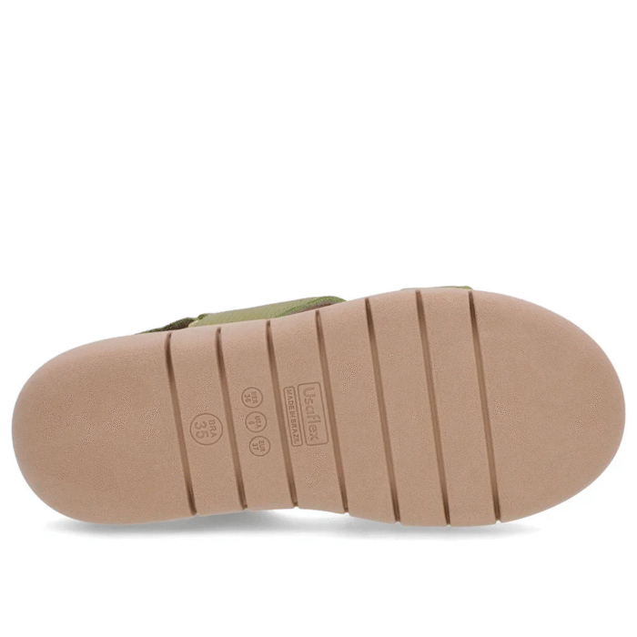 Sandália Couro Verde Tira Fecho-Flex