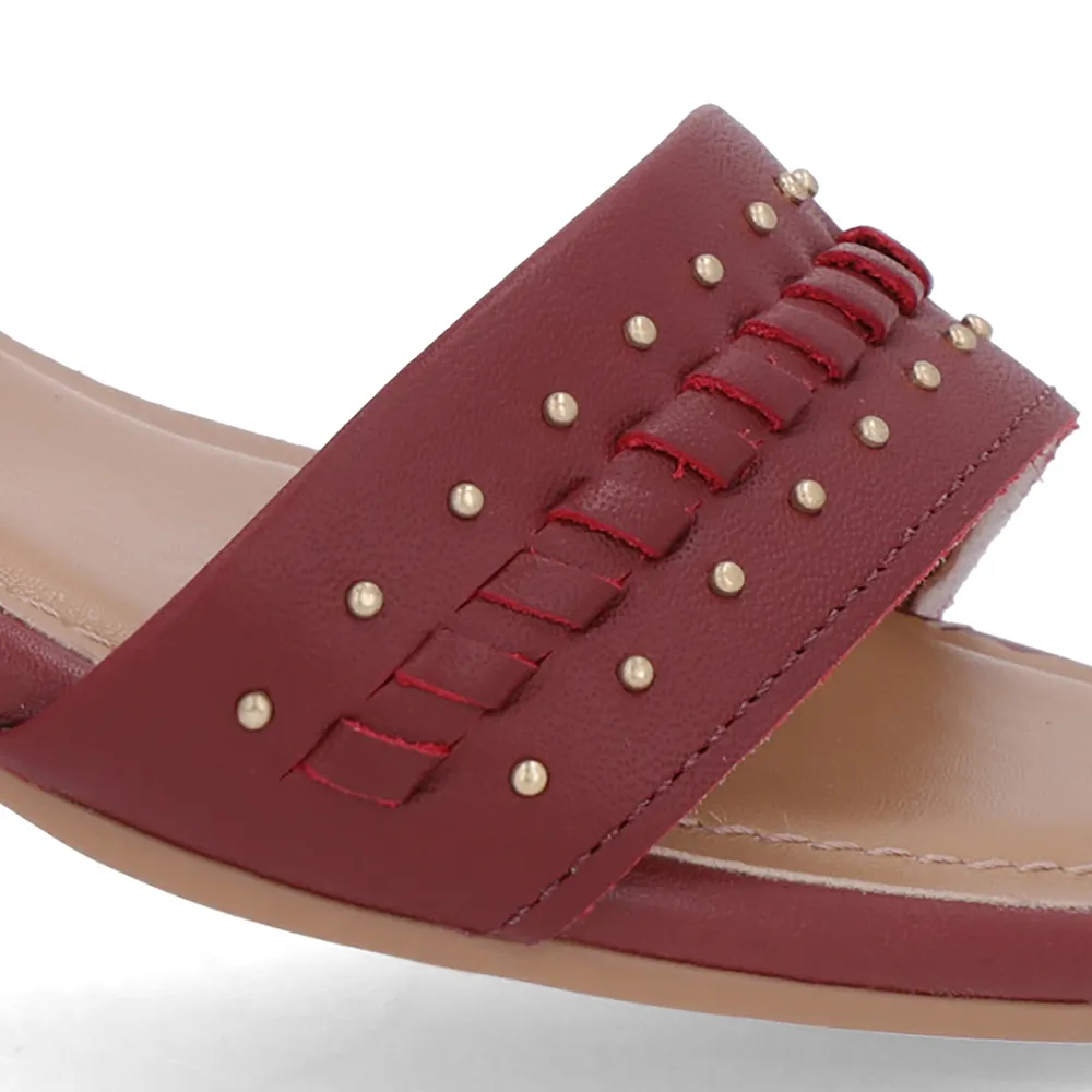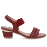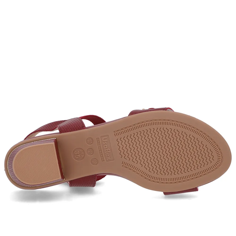 Sandália Vermelha Couro Salto Bloco Detalhe Salto