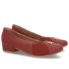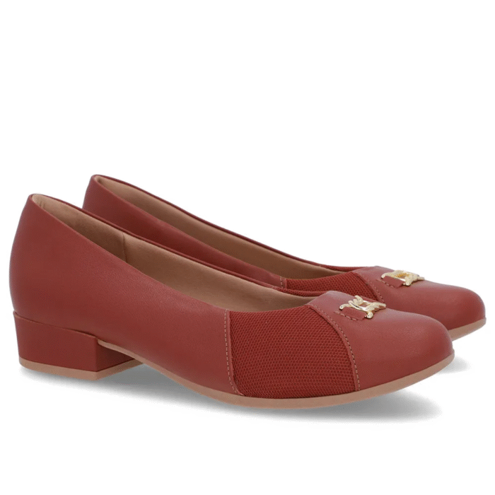 Scarpin Marrom Couro Bico Redondo Tecido Lateral