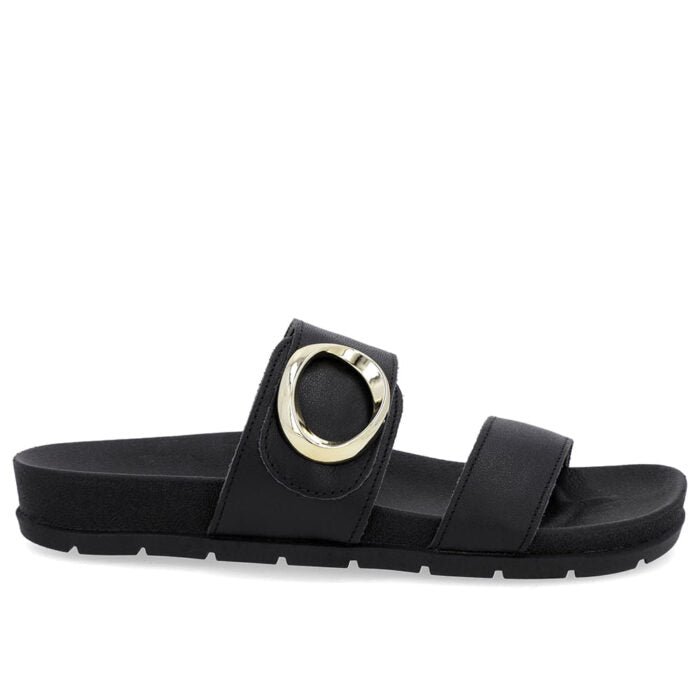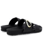 Slide cabedal em couro napa valise na cor preto. O modelo possui tecnologia Sola+Conforto. desenvolvida para amenizar o impacto gerado pelas irregularidades do solo. os solados com espessura extra mantêm os pés confortáveis durante todo o tempo de uso do sapato.