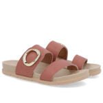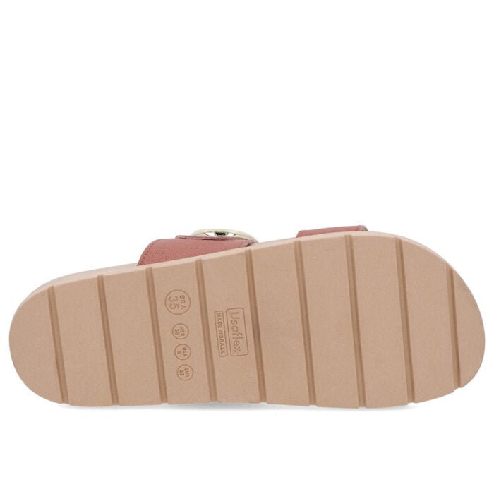 Slide cabedal em couro arraia na cor rosa vintage. O modelo possui tecnologia Sola+Conforto. desenvolvida para amenizar o impacto gerado pelas irregularidades do solo. os solados com espessura extra mantêm os pés confortáveis durante todo o tempo de uso do sapato.