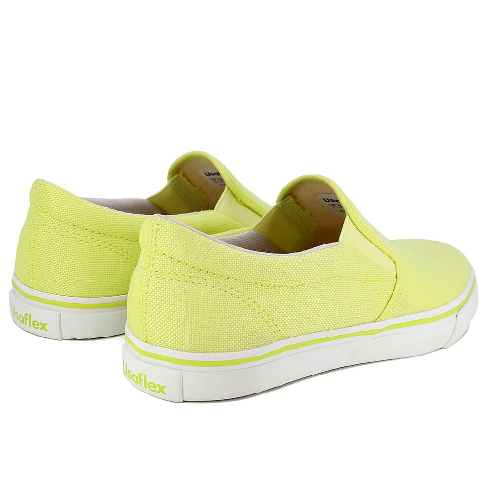 Tênis salto rasteiro com cabedal em tecido na cor lima. O modelo possui tecnologia Memória Permanente. com material de capacidade de retorno e mantêm o formato dos seus pés na palmilha.Fique ligada! Por priorizar o máximo conforto. este produto apresenta um tamanho um pouco maior que o convencional. Portanto. é esperado que este tênis fique mais folgado ao ser calçado. Caso prefira um calce mais justo. sugerimos a compra de um número menor que o seu habitual.